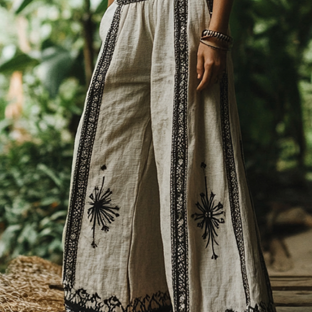 Retro V-neck Lace Linen Women's Long-sleeved Long Skirt Pastoral Style Linen Dress